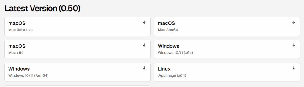 Select the version for your operating system you want to install (Windows, macOS, or Linux).