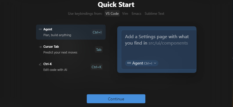 Choose your preferred keybindings (VS Code, Vim, Emacs, or Sublime Text)